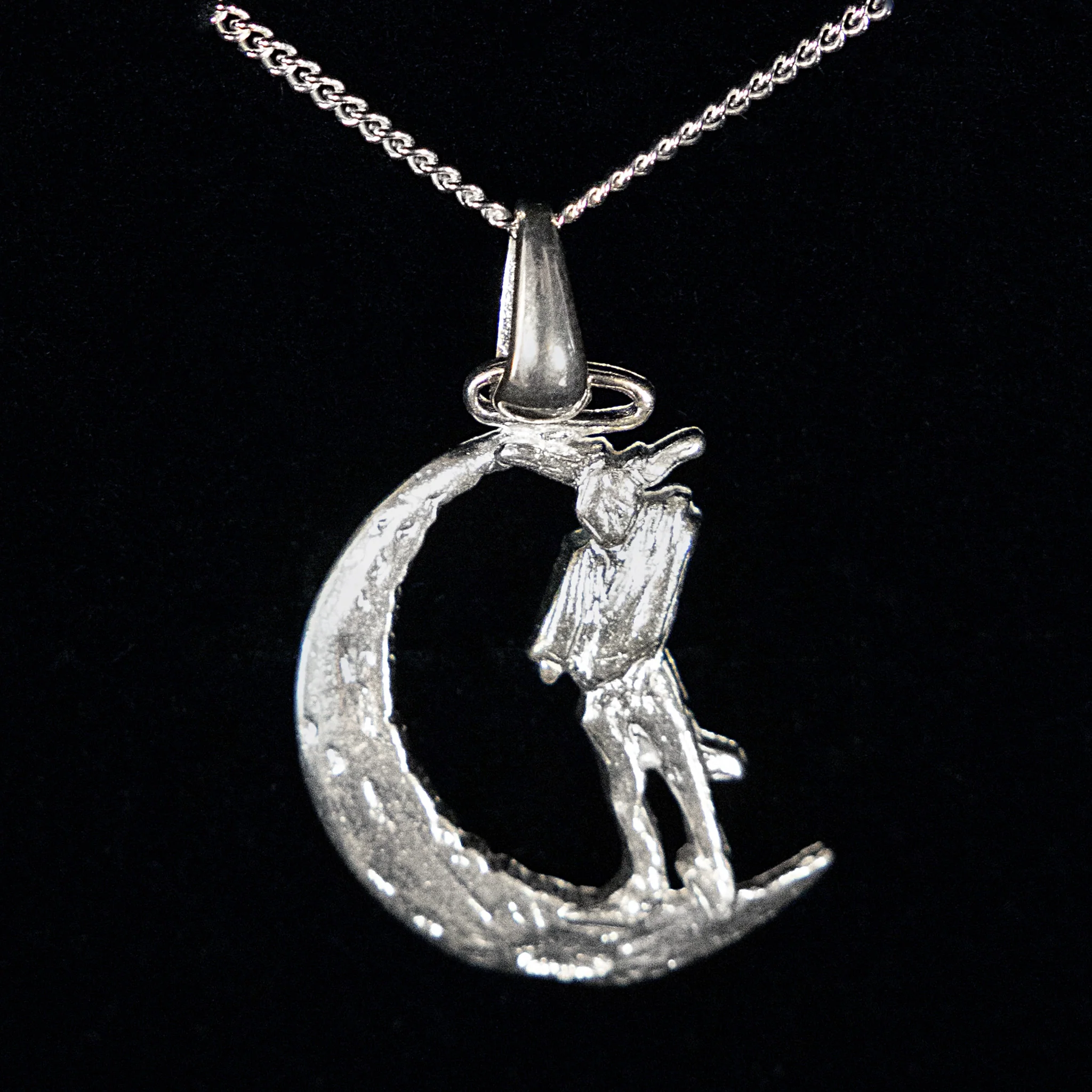This complete set of The Bunnyman on the Moon comes with both the pendant and earrings. Silver cast in England.